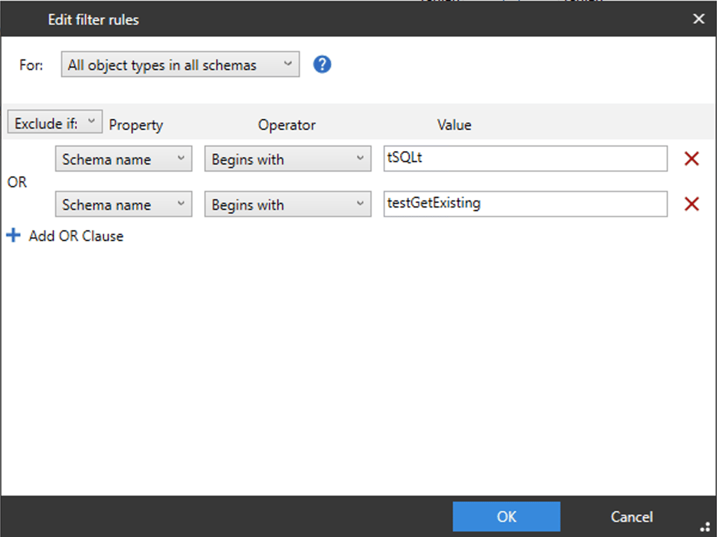 Tip: Seeing too many differences in objects? If you have different schema data (dbo, tSQLt) you can also filter on this. And many other things, just to narrow down the number of differences you see.